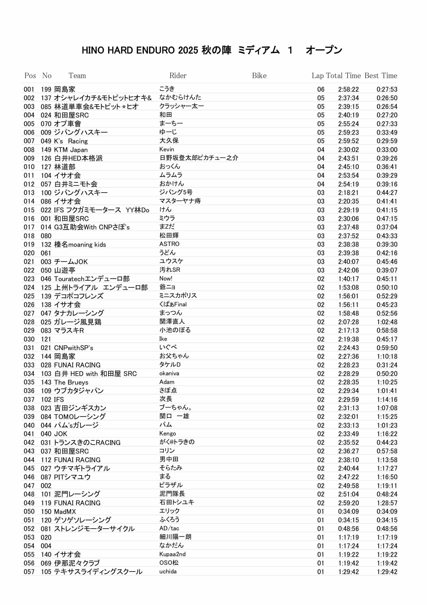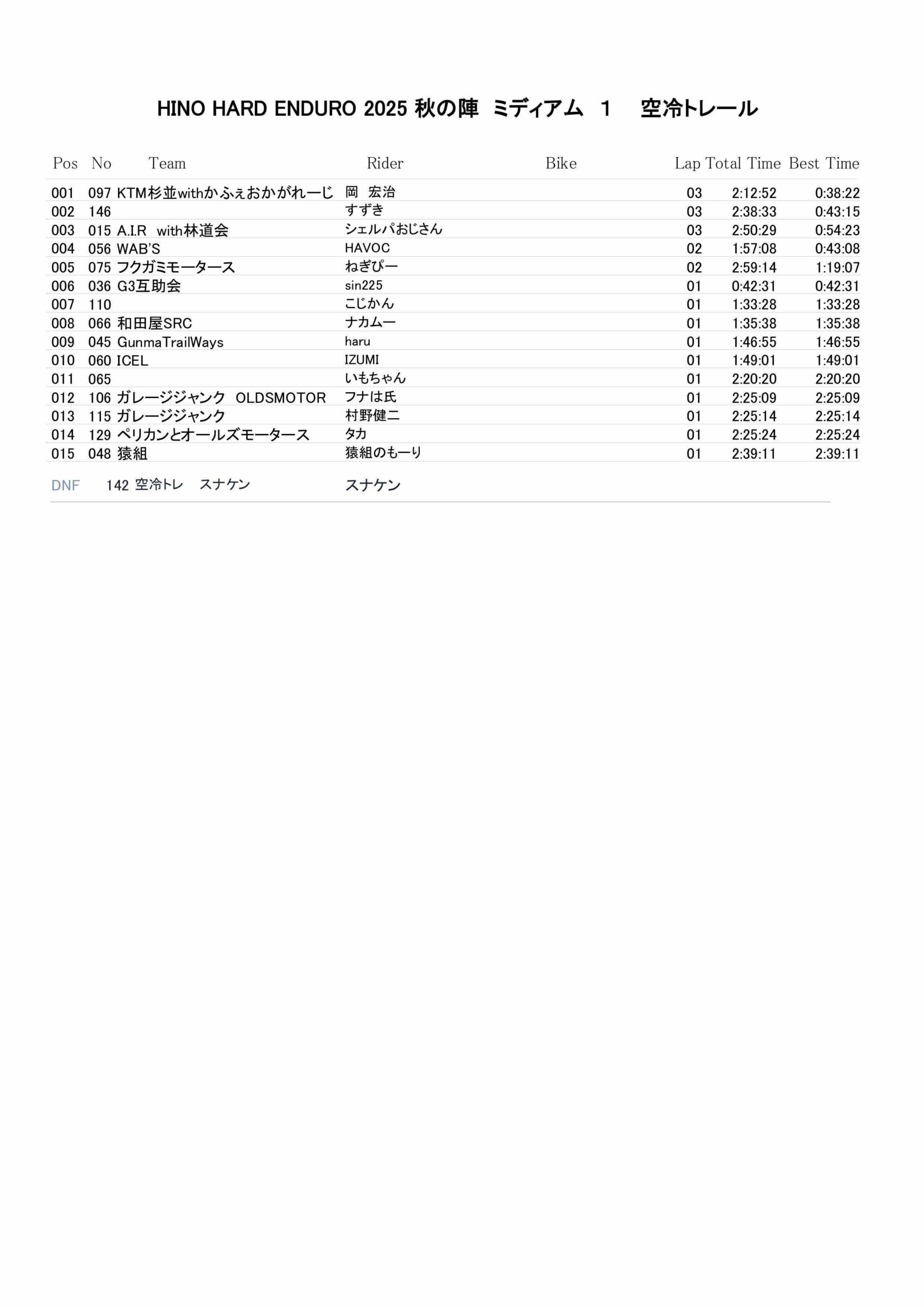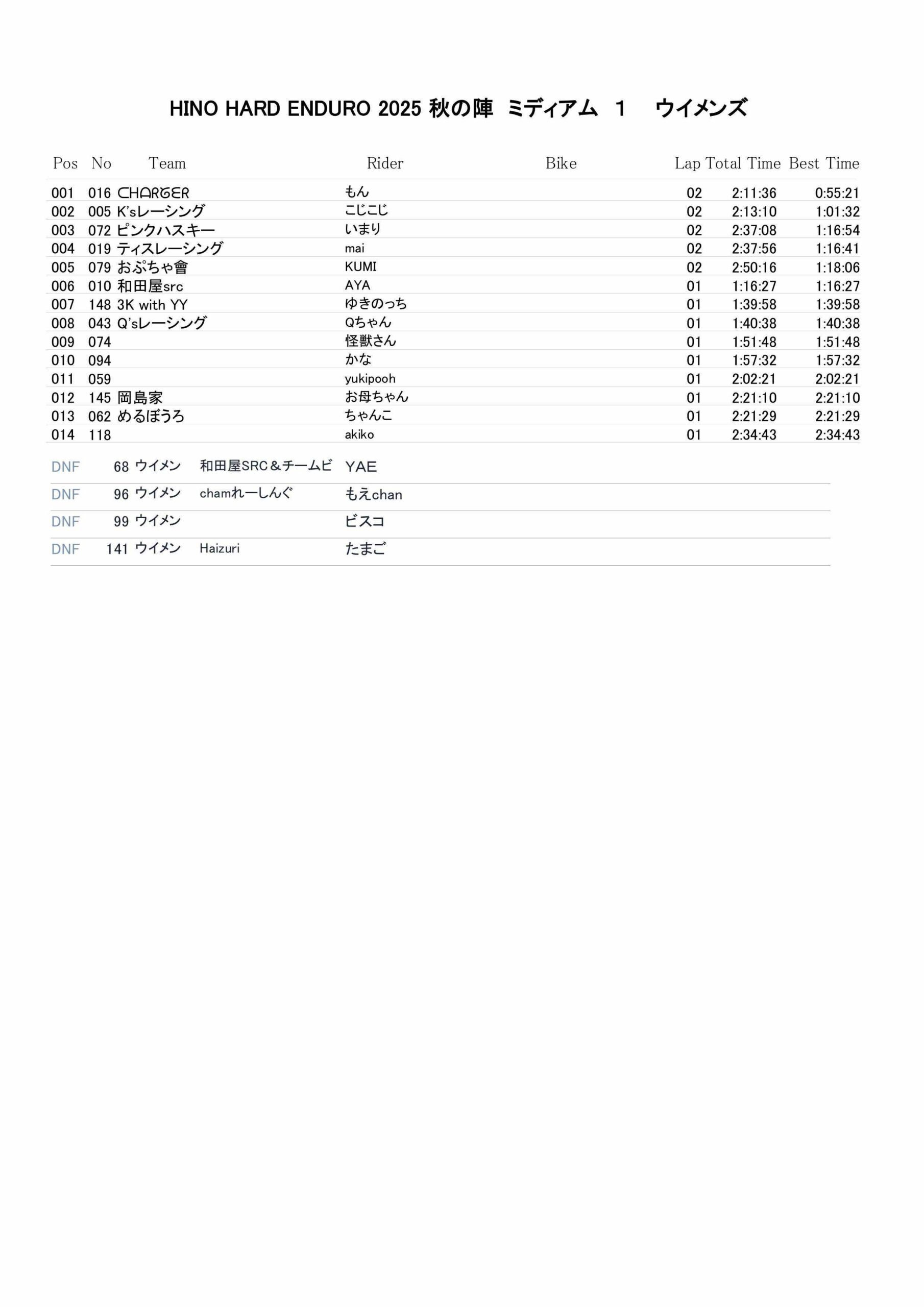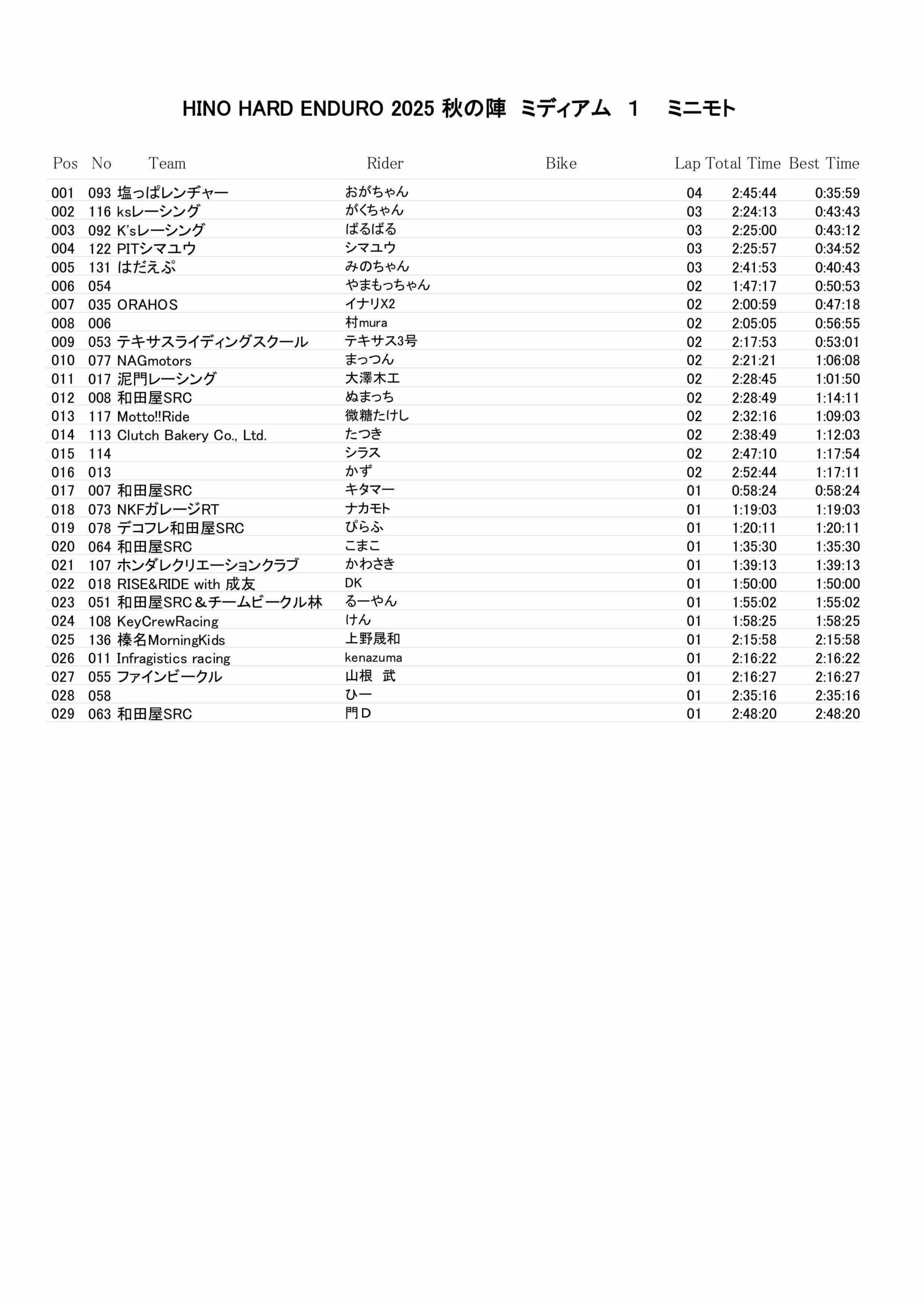 11月15日 ミディアムクラスリザルト