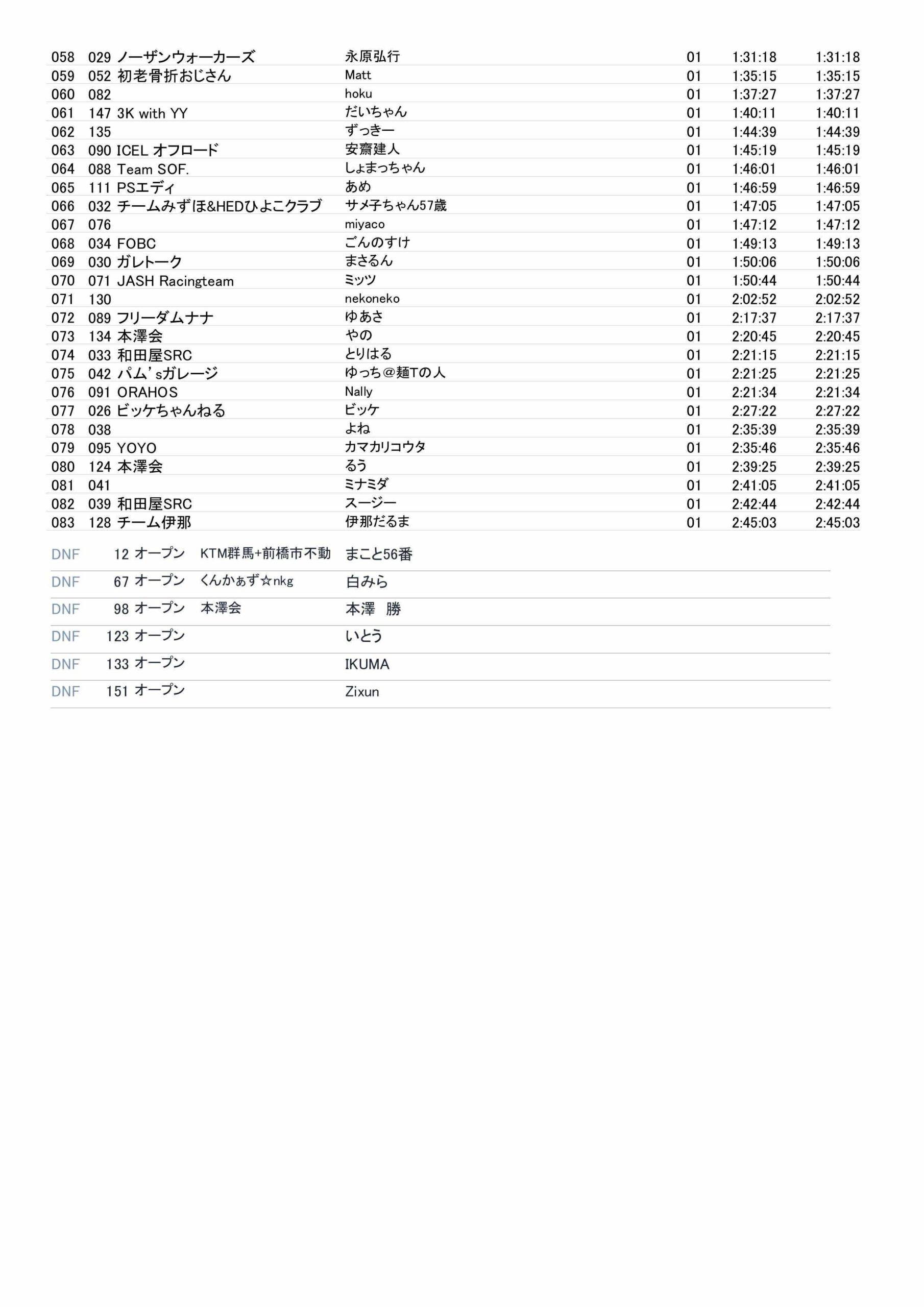 レースリザルト