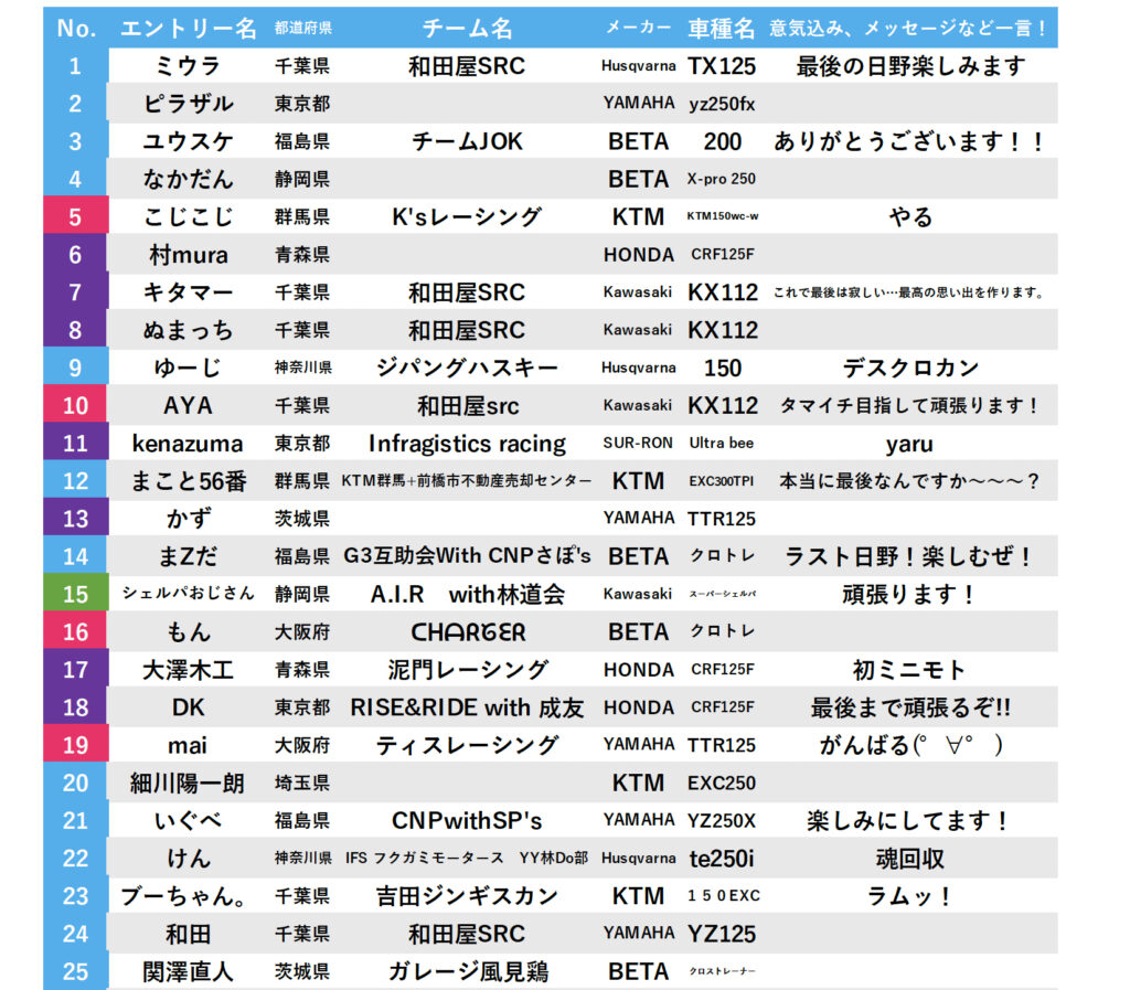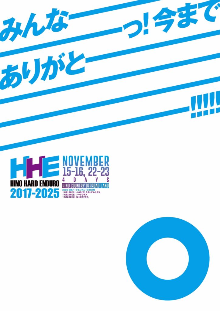 お待たせいたしました。 HINO HARD ENDURO 2025 秋の陣の開催概要を発表いたします。 【ミディアムクラス】と【HARD、G-NETクラス】の開催週が異なりますのでご注意ください。 お陰様で毎回数分にて定 …